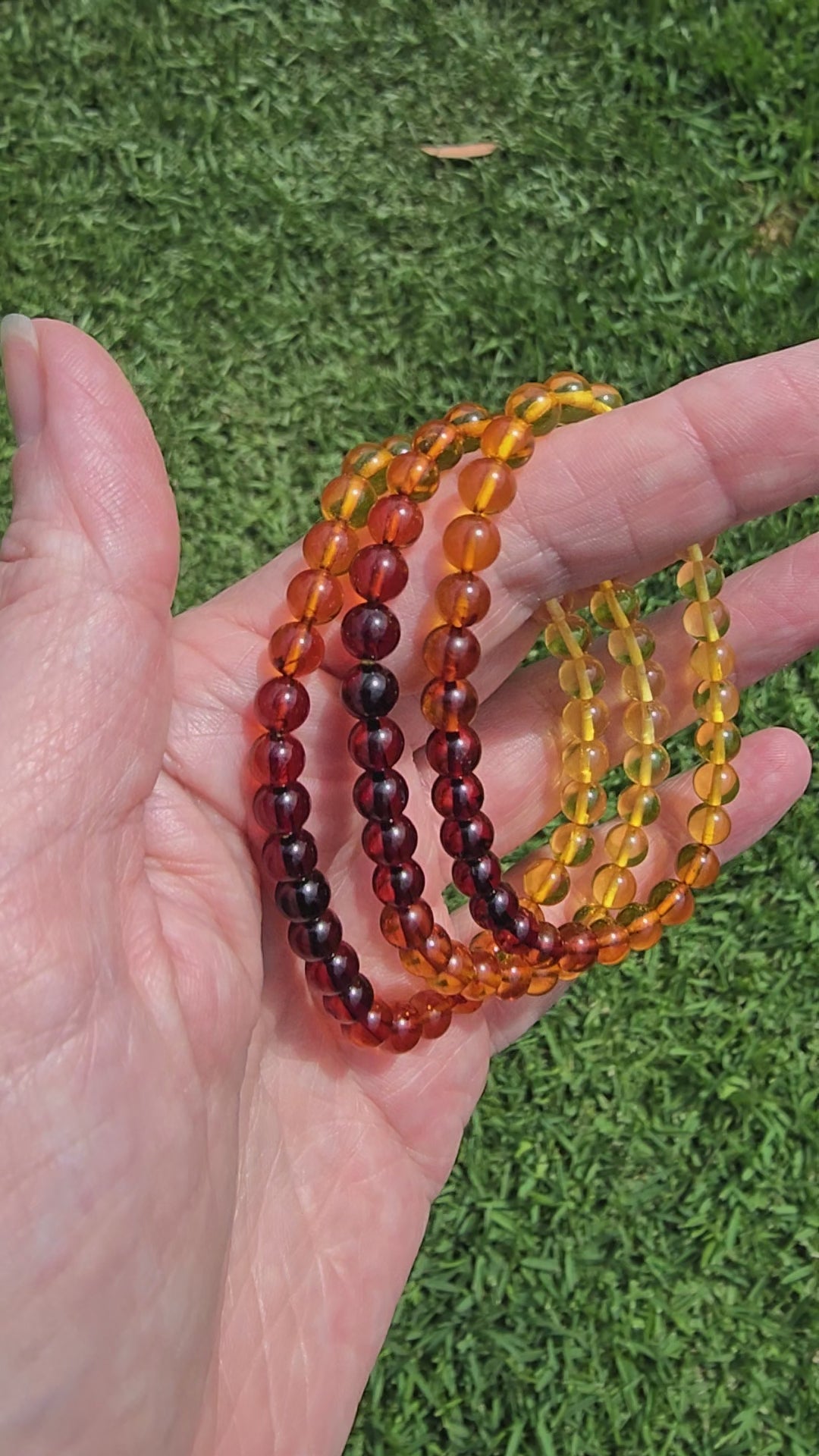 Beautiful multi coloured natural amber bead bracelet. gradient colours from red, orange to yellow beads.