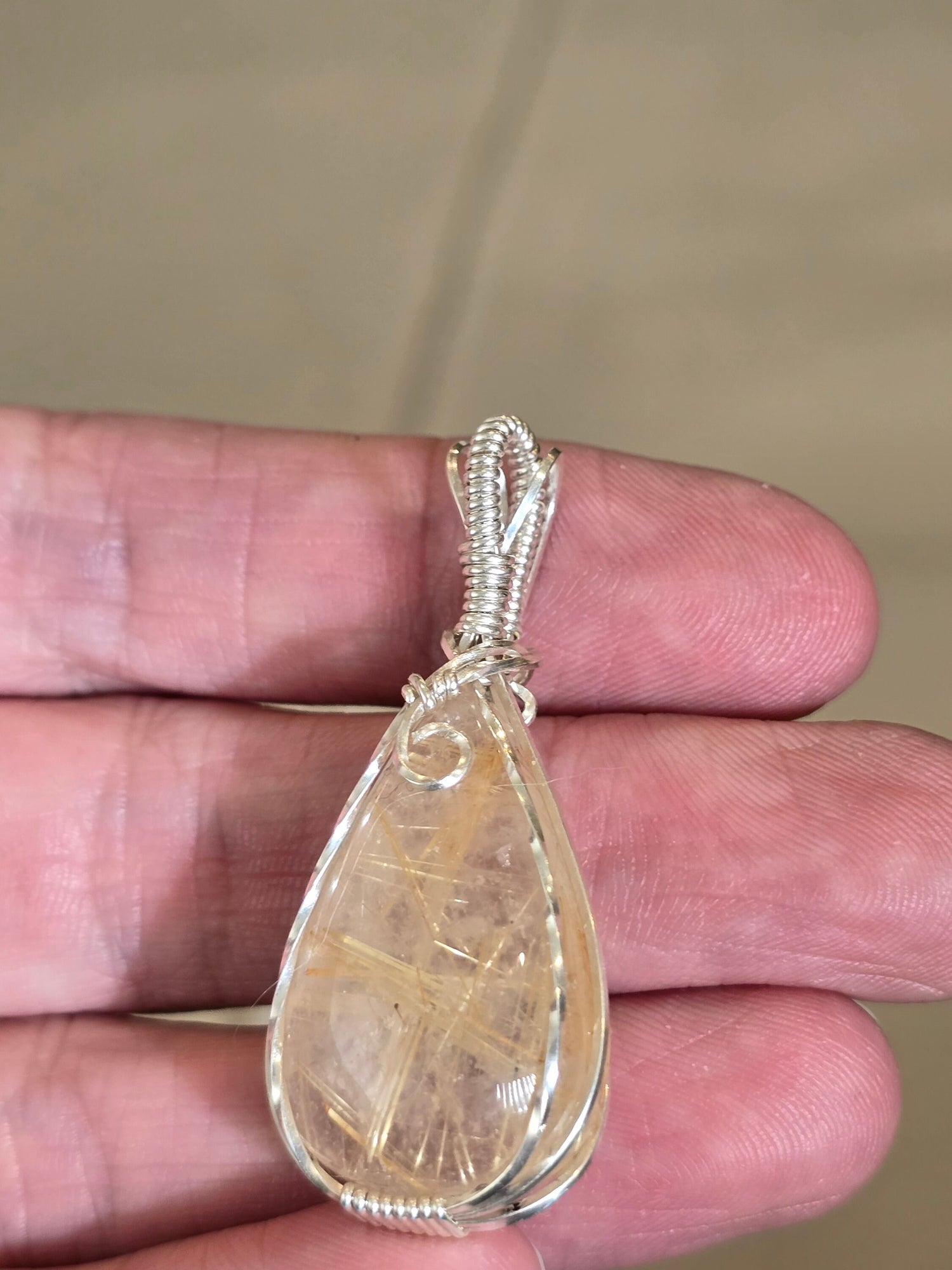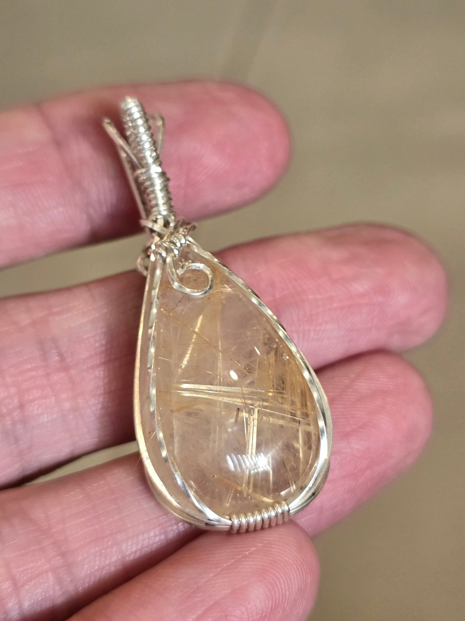 Unique Golden Rutile quartz wrapped in sterling silver.