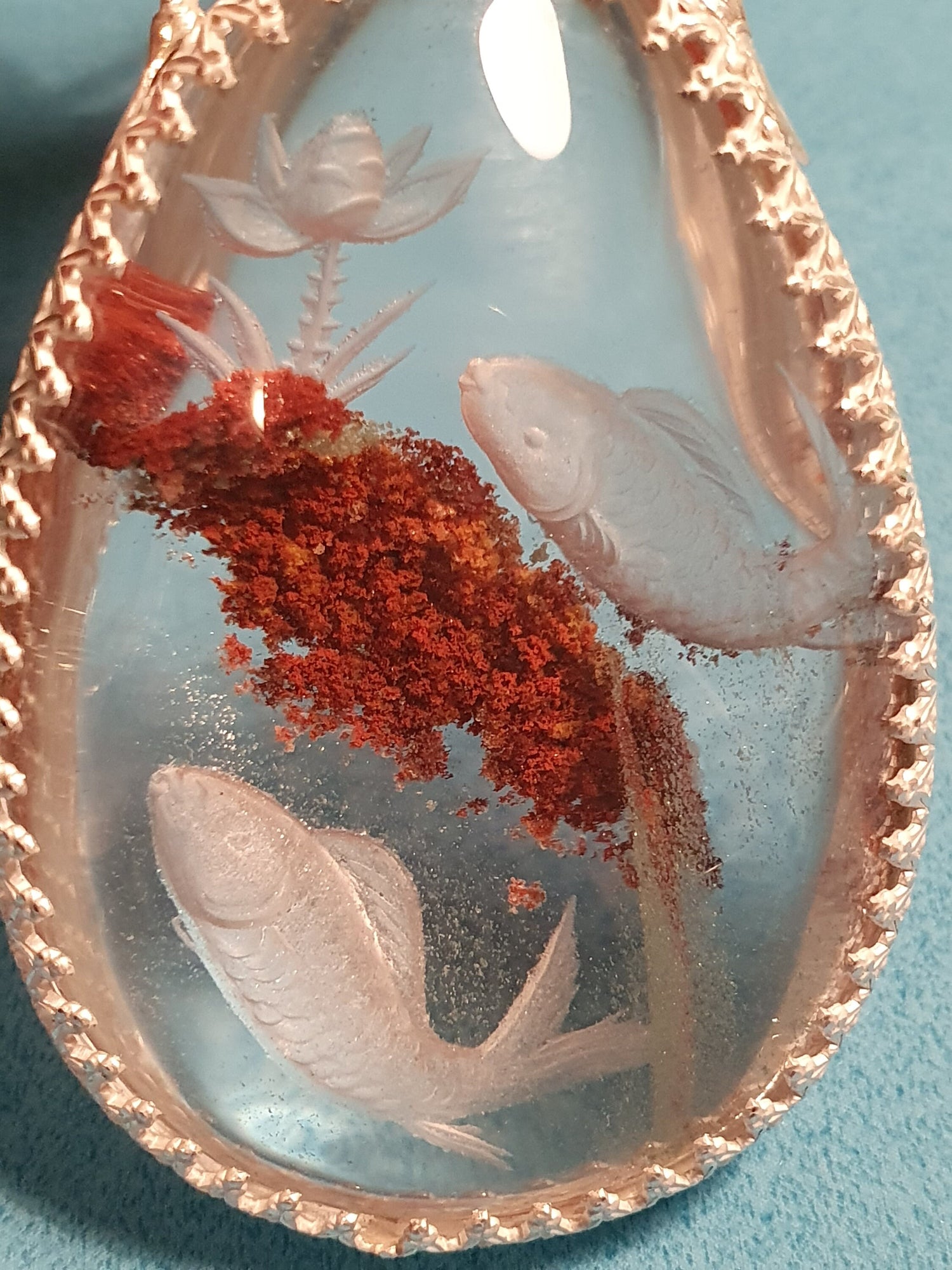 Beautiful Lodolite with carved underwater scene. Set in fine silver setting.