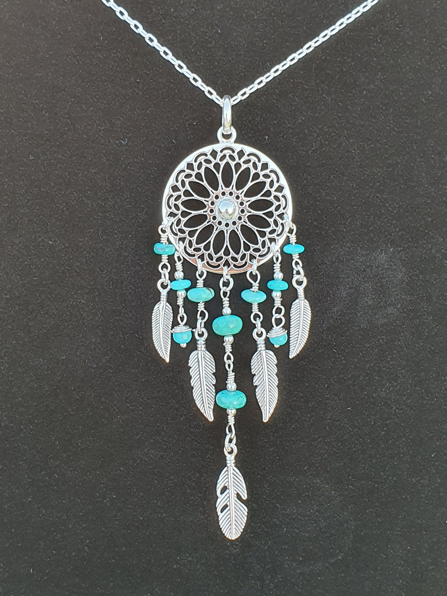 Sterling silver dream catcher pendant with Turquoise stone accents.